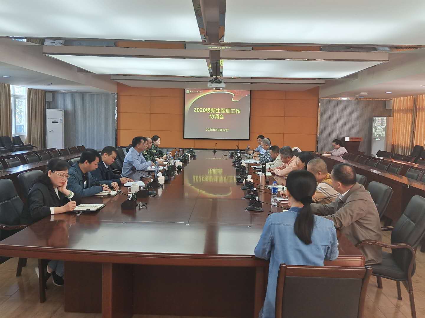 新闻网消息(文/图保卫处  喻军华 为做好2020级新生军训工作,保证军训各项工作有序开展,经研究决定,我校于1012日上午在行政办公楼300召开军训工作协调会,学校副校长王伟,党(校)办、宣传部、学生处、教务处、后勤处、保卫处、团委1名负责人,二级学院党总支书记及武警柳州支队孟阳副部长等参加了会议,会议由学校武装部部长钟旭主持。
