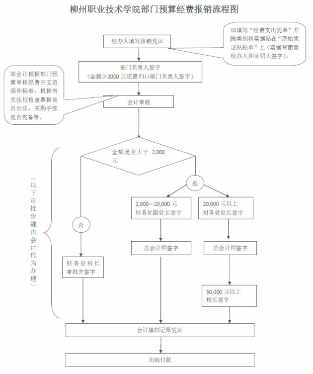 财务服务新举措系列——报销流程图启用 来源: 发布时间:2015-12-29 00:00:00 浏览次数: 次 【字体:小 大】 为更好落实学院“以人性化服务为理念,提高办事效率、提升服务水平和品质”的工作原则,服务学院大局,增强为教学、师生服务意识,提升财务管理能力。财务处积极开展梳理、简化报销流程的工作,并从师生员工角度出发,将各种复杂的报销流程程序化、图表化、线条化,主动为师生服务,提高财务处的工作效率。 欢迎广大师生到学院财务处网页上浏览、下载部门预算经费、出差费、借款、还款冲账以及科研经费报销流程图,并提出宝贵意见及建议! 分享到: 【打印正文】