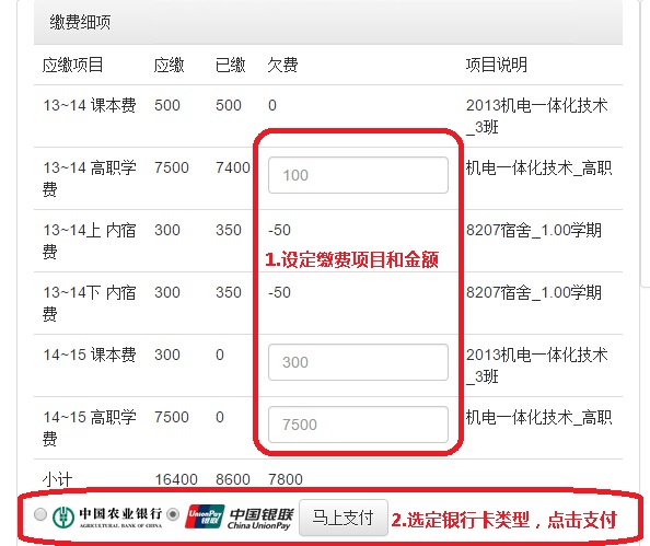 第四步、在缴费界面,输入本次缴费金额,缴费顺序为课本费、体检费、医保费、住宿费、学费。
