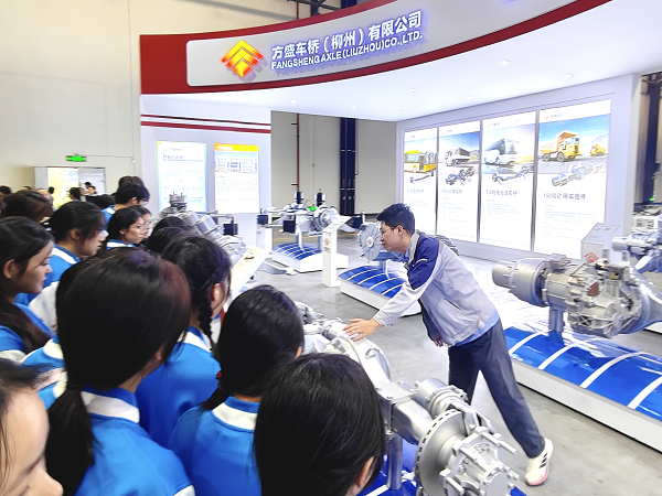 活动当天,在带队党员老师宋鑫悦、梁嘉谊的带领下,同学们统一乘车前往方盛集团。企业参访环节,方盛实业集团党委罗海斌书记详细介绍了集团自2000年成立以来的发展脉络、从核心零部件制造到专用车研发的全链条业务体系,以及2023年启动股份制改造、布局资本市场的战略规划,生动阐释了创新与匠心作为企业核心驱动力,与我校“匠心柳职”精神的高度契合。