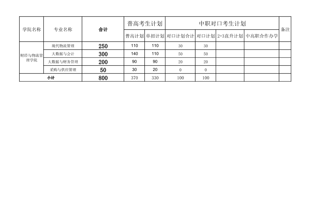 财经与物流管理学院2023年招生计划