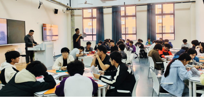 活动伊始,龙双强老师以“剪纸里的生肖文化”为主题展开分享,从剪纸的历史渊源、地域流派,讲到马在传统文化中象征的奋进、奔腾之意,结合历年生肖剪纸作品,细致讲解了折叠、起稿、剪刻、修整等核心技法?!凹袈淼淖酌於?,线条要飘逸;刻马蹄要精准有力,凸显稳健之感。”龙老师一边手持剪刀示范,一边拆解关键步骤,手中的红纸在几番翻转剪刻后,一匹昂首扬蹄的骏马便跃然纸上,引得现场师生阵阵赞叹。