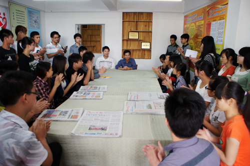 5月31日上午,我院艺术校区学生活动中心筹建完成,下设党团德艺学堂、青年志愿者工作站、资助教育工作站和心理健康教育工作站。艺术设计系领导、辅导员与30名学生干部代表参加了在活动中心举行的成立仪式。 艺术设计系党总支书记梁毅致辞说:“艺术设计系学生活动中心筹备了近一年,将打造成为党团教育、青年志愿服务、资助教育、心理健康教育等多功能的特色教育阵地,是开展学生第二课堂活动、课外学习和文化交流的平台?!彼婧螅吃贝碚呸币沧髁思蚨谭⒀?,表示将利用好学生活动中心,开展丰富多彩的学习交流活动。 活动中心原是空置多年的门面,艺术设计系阎志斌老师带领数名学生干部自行安装灯具、粉刷墙面、制作桌子、布局环境,做到“绿色环保,废物利用”。活动中心建成后解决了艺术校区长期缺乏学生开展课外学习、社团活动的公共场所问题,场地面积虽小,学生却有了发展兴趣爱好的自由、开放、多用途的大舞台。(文/何敏杰、阎志斌 图/何敏杰)