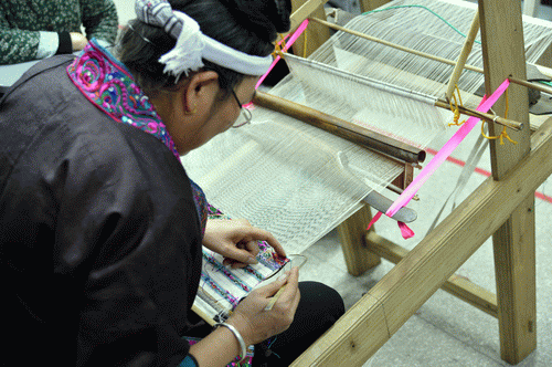 杨老师在传授织锦工艺