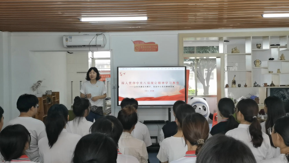 崔智慧以“深入贯彻中央八项规定精神学习教育——以作风建设为抓手,促进学生党员健康发展”为主题,结合时代意义与典型案例,为毕业生党员上了毕业前“最后一堂党课”,她强调青年党员需筑牢理想信念根基,将党的纪律要求内化于心、外化于行,以过硬作风展现新时代党员的政治素养与党性修养。