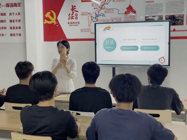 “我们不希望任何一位同学,因一时疏忽而蒙受经济损失,更不愿看到因为被骗而引发心理问题甚至影响学业和生活?!敝邮骀翟谂嘌抵星康?,防范诈骗不仅仅是个人的责任,更需要集体的协作。她号召全体宿舍长和班干部在日常工作中强化“守门人”意识,将反诈知识传达到每一位宿舍成员,并在日常相处中多观察、多交流,关注舍友的异常行为,及时发现和制止可疑操作,防止事态发展。