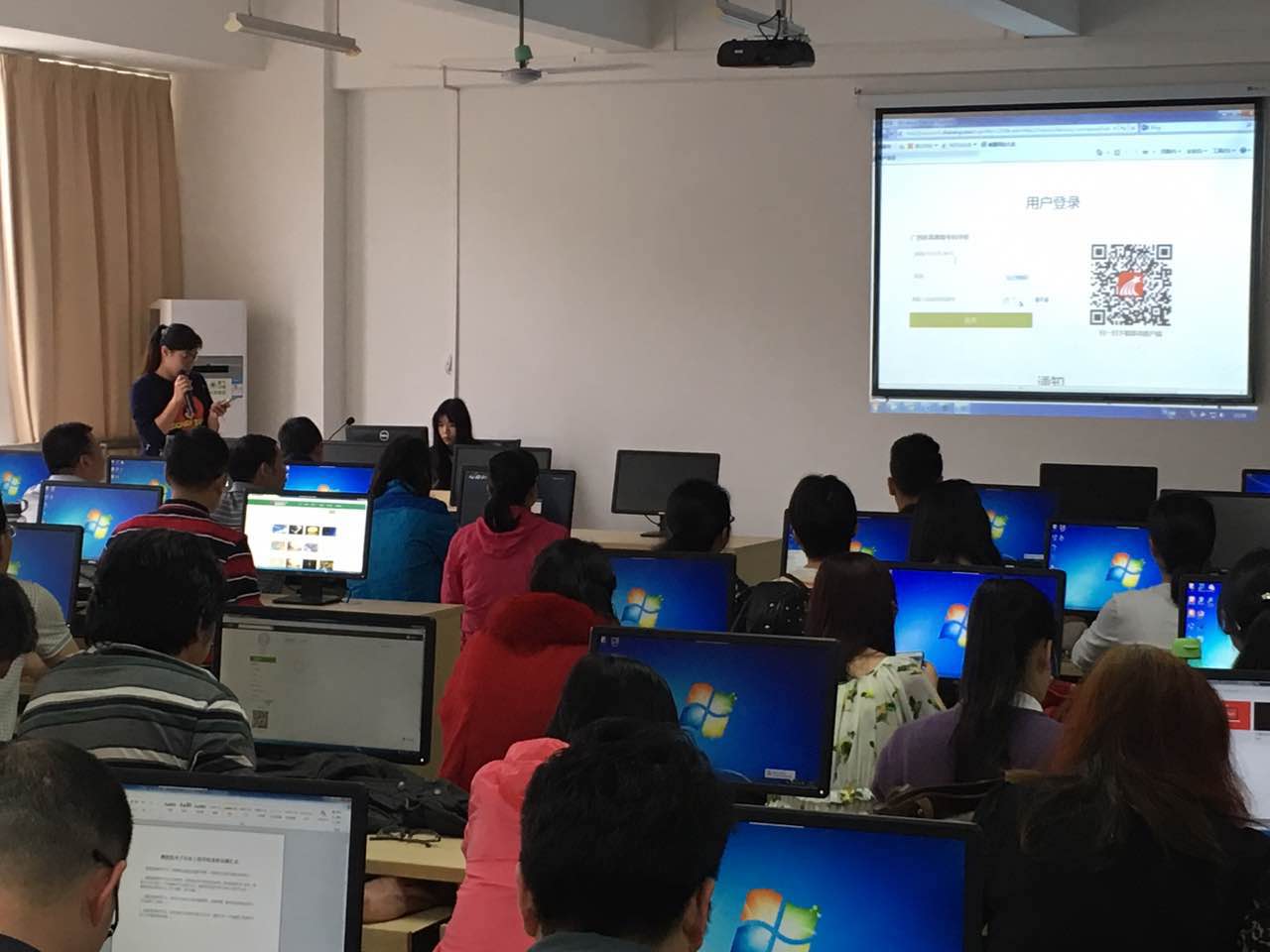 副院长张慧敏主持培训。超星公司技术人员项雅枚详细介绍了网络教学平台的功能及使用方法,让老师们了解到通过该平台,可以更方便地在网络上与学生进行教学互动,如进行考试、布置作业、答疑、讨论等,还可以随时查看学生观看教学视频的时长及次数,及时反馈教学情况;也可以访问外校网络课程,进行校际间教学交流。该平台还具有手机端应用教学功能,增加了师生沟通的途径。