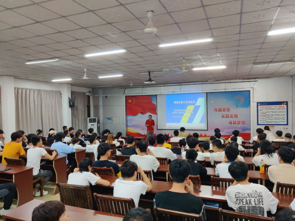 7月1日下午,电子信息工程学院首次展开《职场风云》分享会。网络求职工具的使用分享会在思贤楼101教室进行,柳州市唐潮科技有限公司人事总监—刘楠、销售总监—吴宇应邀做分享交流。
