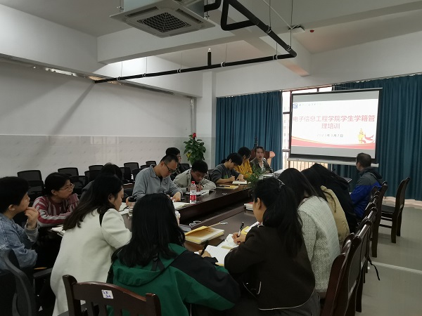 新闻网消息(文、图/电子信息工程学院 曾静)为提升新入职辅导员业务能力,规范学生学籍管理,2023年3月7日上午,电子信息工程学院学生科组织全体辅导员在T2-B304会议室开展学生学籍管理培训。该院党总支书记唐述荣出席会议。