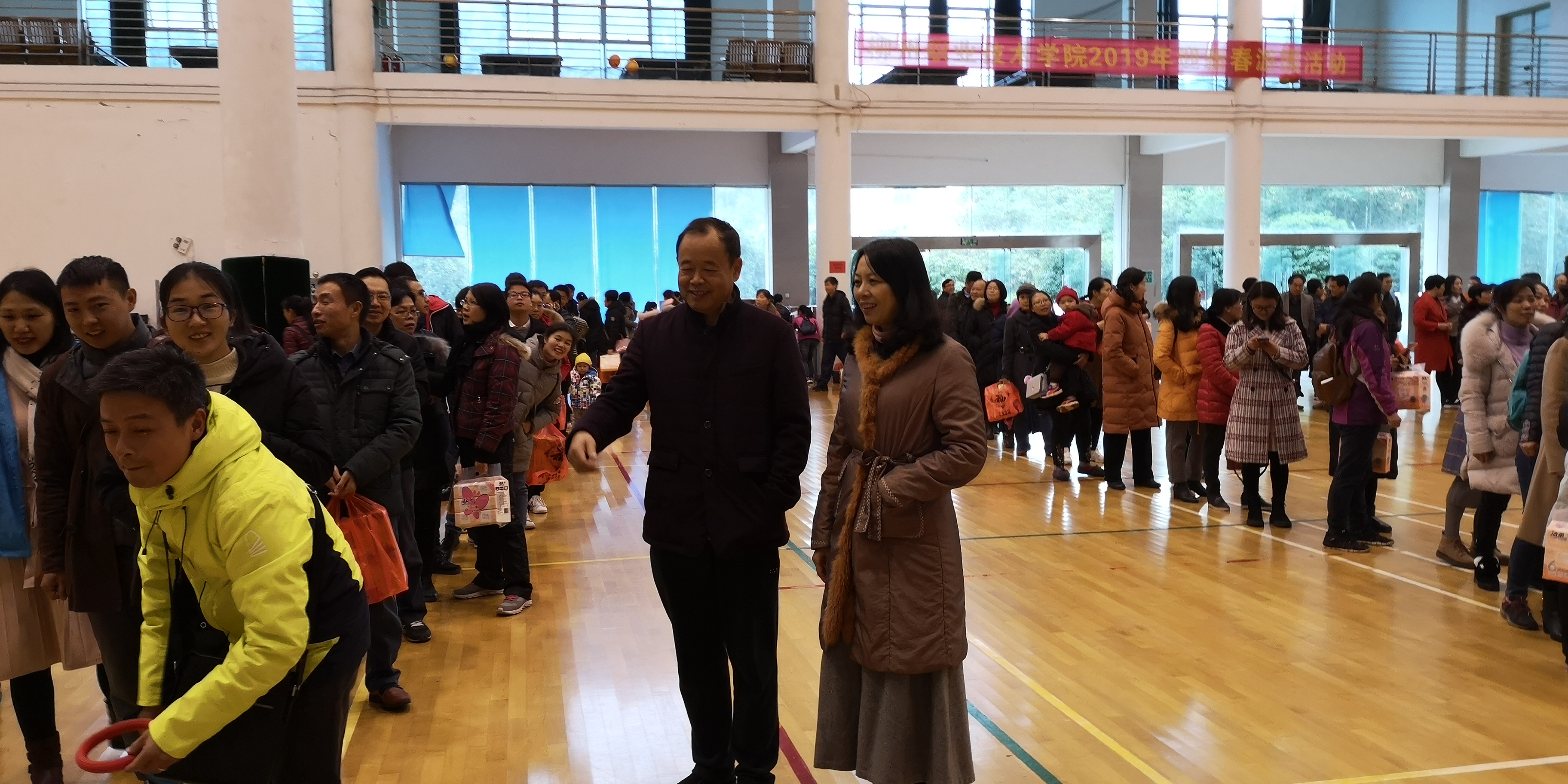 新闻网消息(文/工会 覃纪武 图/工会 覃纪武)2019年1月15日下午,由学校工会主办、相关二级工会协办的教职工“2019年迎新春游园活动”在体育馆举行。石令明、张翔、阳旭、杨毅、林若森、鞠红霞、冉福松等校领导来到活动现场,与大家一起分享新春的喜庆与活动的快乐。