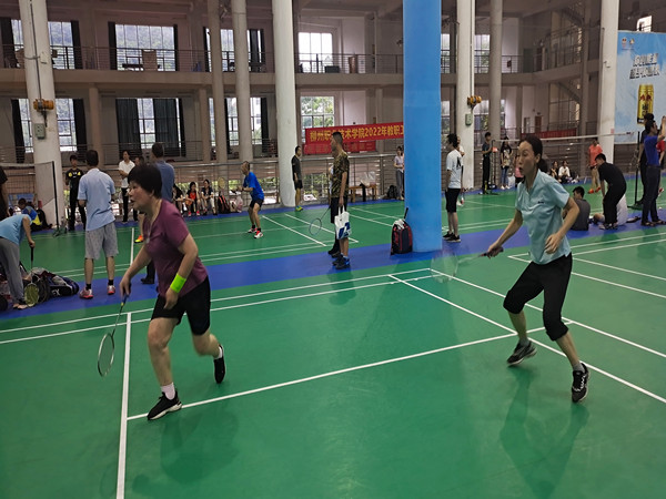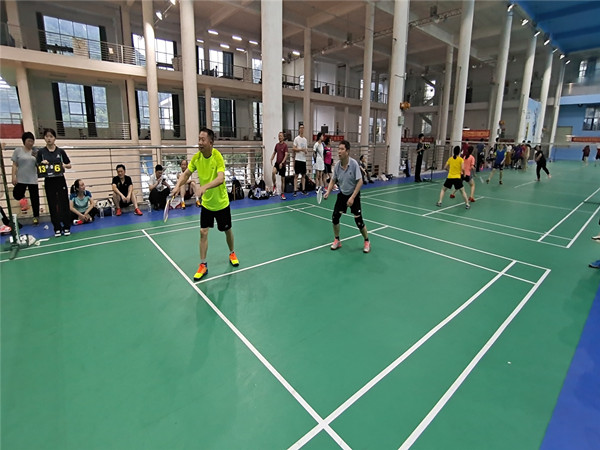 今年的比赛项目为三场制混合团体赛,分为男双、女双、混双, 13个基层分工会代表队分成AB两个组,按组进行单循环赛,校领导刘子林、李善文、冉福松,各党政部门、二级学院领导及教职员工近200名选手参加了比赛,比赛共举行了36场混合团体赛。赛场上,既有60岁的羽坛老将,也有刚入职的“小鲜肉”,换上了轻便运动装的教师们,变成了活力四射的运动员,尽显风采,斗志昂扬,赛场氛围一片祥和、热烈。