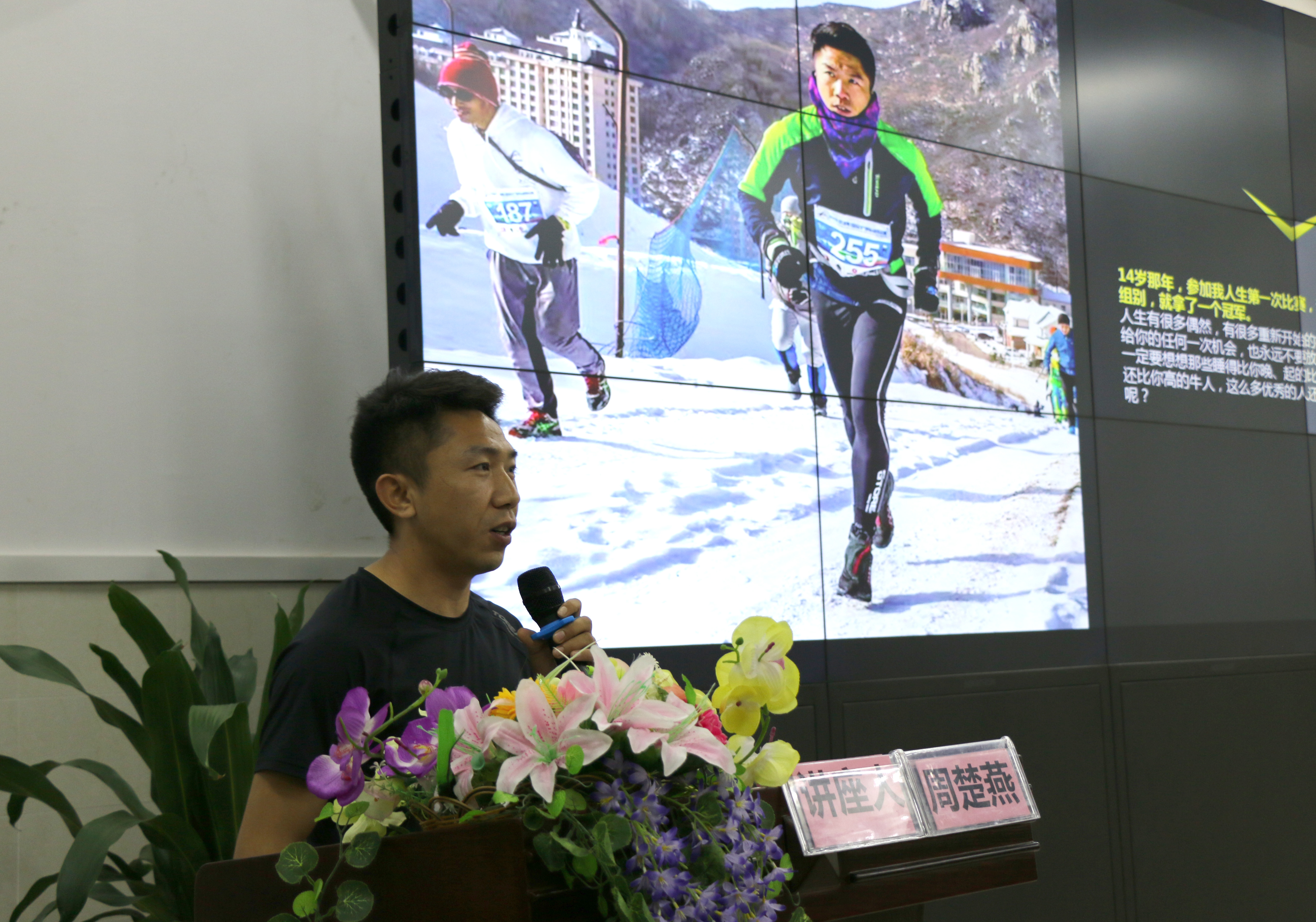讲座上,这位在多项重量级马拉松赛、世界级户外挑战赛中屡获大奖的北京小伙子,从14岁就参加比赛并获得冠军。他用自己的亲身经历,分享了自己如何一步步给人生设定“前行”的奋斗目标,从海淀区冠军到全国冠军,再到国际新手组冠军的奋斗历程。