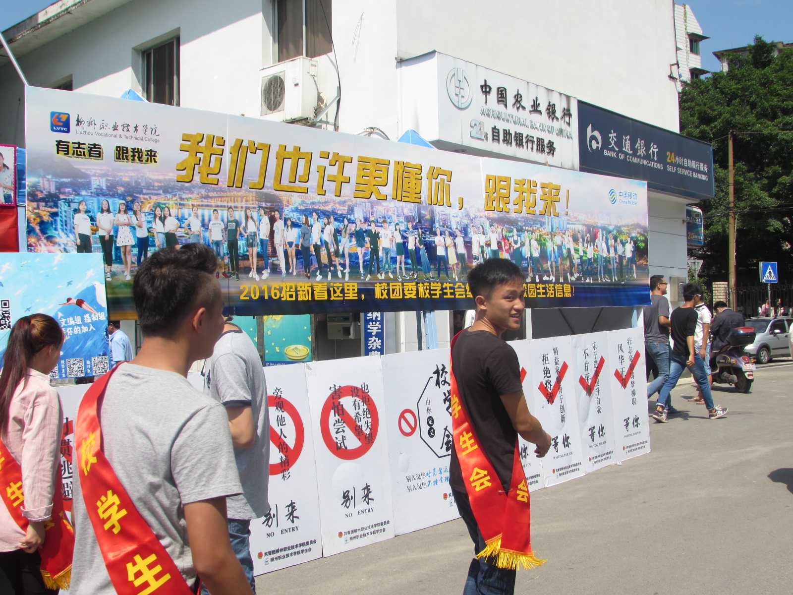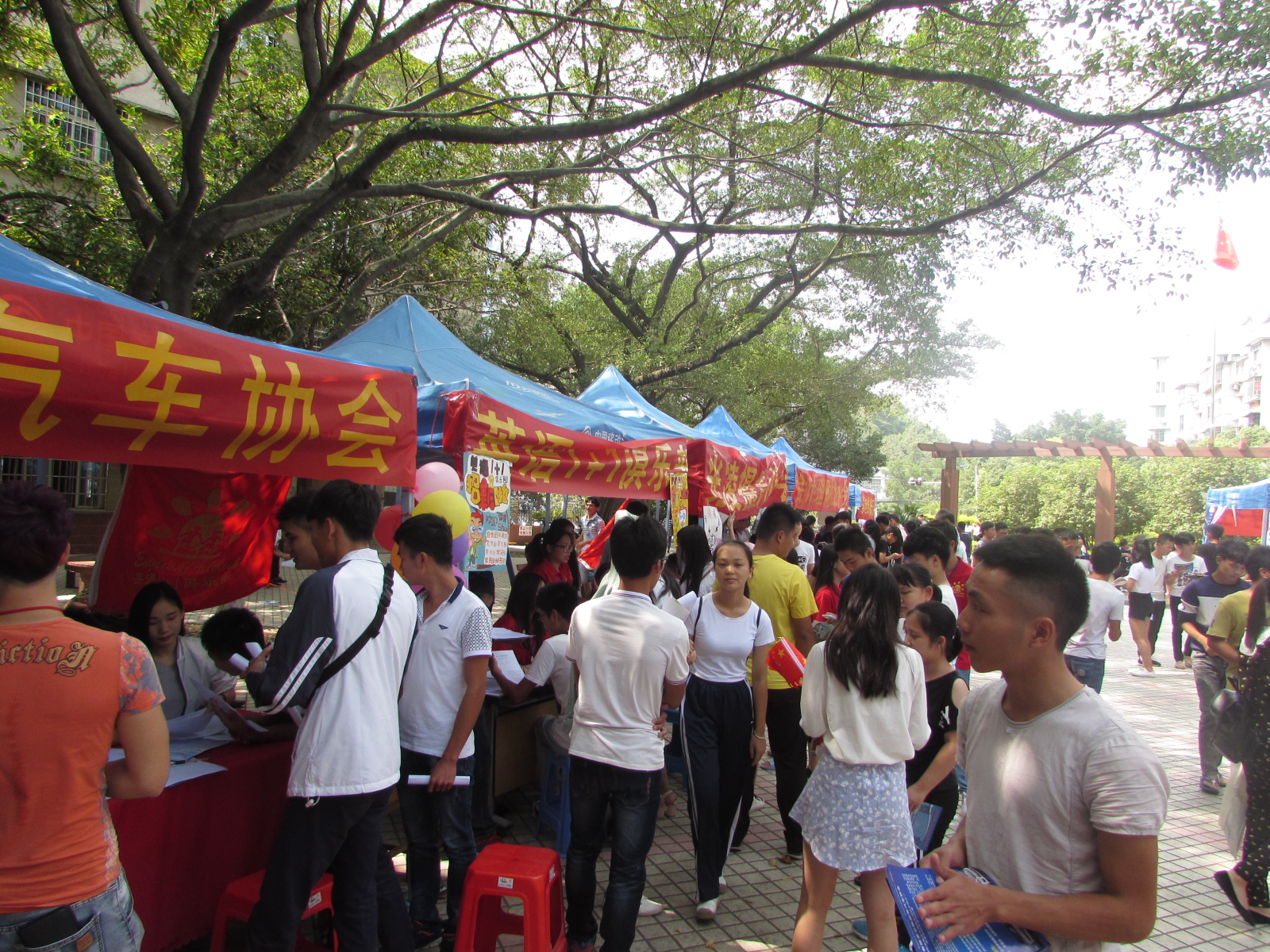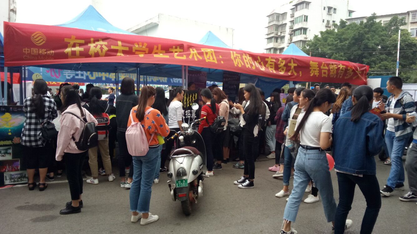 第一阶段是10月13-14日,在坡下A区行政楼旁,各级学生工作组织招新,包括校团委校学生会、校志愿者总队、校国旗队、校大学生艺术团、易班工作站、新媒体中心、学生自主管理委员会以及各二级学院学生会等组织。