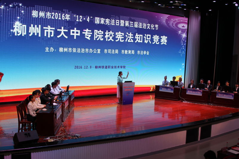 这是“12.4”国家宪法日暨柳州市第三届法治文化节期间,为提高全社会宪法意识、弘扬宪法精神,柳州市依法治市领导小组办公室、柳州市教育局、柳州市司法局、柳州市法学会共同举办的一次活动。