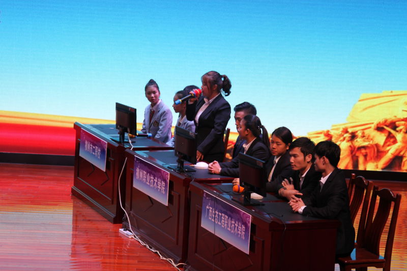 当日下午,“柳州市大中专宪法知识竞赛”在柳州铁道职业技术学院拉开帷幕。来自柳州市的6所大中专院校参加。我校派出3名选手组成战队参赛。3名同学从接到任务到奔赴赛场,前后历时一个月的时间。除了积极准备组委会提供的题库,还查找了很多宪法相关的资料,对宪法进行更全面、深入的了解。赛前积极备战,赛场上才能有出色的表现。必答题部分无一错漏,抢答题部分也是得分强项。参赛选手纷纷拿出了自己的看家本领,经过激烈的角逐,我校3名选手取得了较好的成绩,展现了柳职学子良好的职业素养和较高的技能水平。