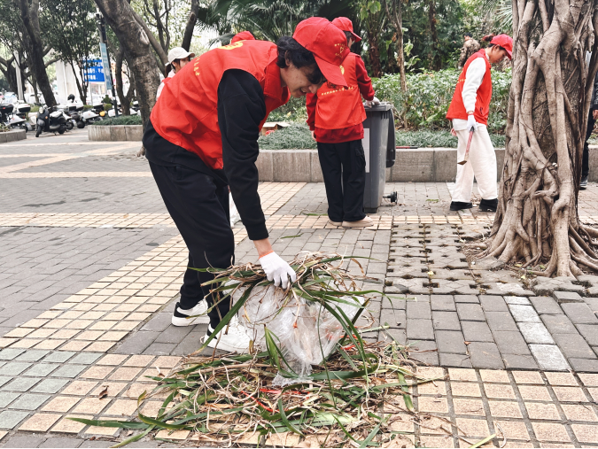 活动现场,红色马甲跃动着,化作春日最鲜亮的色彩。志愿者们跟随柳州市江滨公园管理处工作人员的步伐,认真清理垃圾,让公园的草地焕然一新,如一张天然的“绿地毯”。铁锹与泥土的碰撞声里,新翻的泥土蒸腾着大地的心跳;扶苗培土时,手套上沾染的不只是春泥,更是生命的温度;浇灌绿植时,指尖传递的不只是清水,更是生机的活力?;忧屡嗤良?,种下鸭脚木、鸢尾绿植6000余株,完成绿地景观提升改造300余平方米,并清理了白岩山小游园两座山体2000余米登山台阶沿线的卫生。