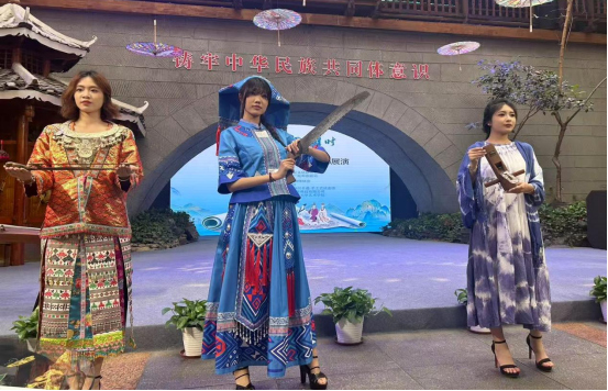 T密码模特队的学生们穿着各式各样的民族服饰,以优美流动的姿态向现场的观众们展示柳州地区丰富的非遗物品、民俗活动等非遗文化,活动中穿插民族歌舞表演、乐器演奏、有奖问答等环节,打造立体式、多维度、沉浸式的非遗文化演出与展示模式。
