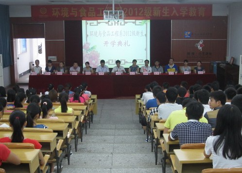 2012年9月13日上午,环境与食品工程系全体师生在德馨楼101教室举行2012级新生开学典礼暨入学教育。