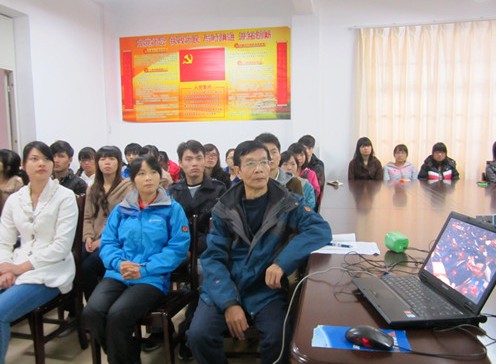 当日上午8:40,该系领导早已组织系部教职工党员、学生党员、青年团员已聚集在系会议室,聚精会神地收看现场直播的党的十八大开幕会盛况,悉心聆听胡锦涛同志作的报告。大家一致认为,胡总书记的报告全面、深刻,振奋人心。大家深受鼓舞,表示继续关注、学习十八大精神,并把会议精神贯彻到实际学习、生活与工作中,努力进取,开拓创新,坚定信念,服务社会,建设祖国。 (文/黄姿梅 图/陈富贵)