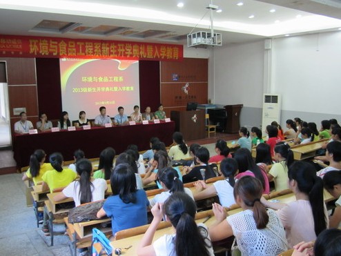 2013年9月16上午,环境与食品工程系全体师生在德馨楼101教室,给174名2013级新生举行开学典礼暨入学教育。