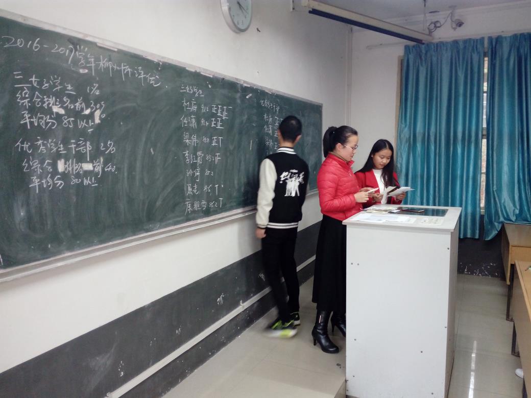 在班会上,黎励老师首先公布了柳州市先进班集体、三好学生、优秀学生干部的评选条件和优秀学生名额,接着,她根据全班同学的综合素质考核成绩及其他条件提出了符合参与资格的同学人选,随后同学们进行了无记名投票。经过唱票统计之后,黎励老师当场公布评选结果:杜府同学当选“三好学生”候选人,任潇以及屈尧两位同学当选“优秀班干”候选人,全班同学以热烈的掌声对他们表示热烈的祝贺。