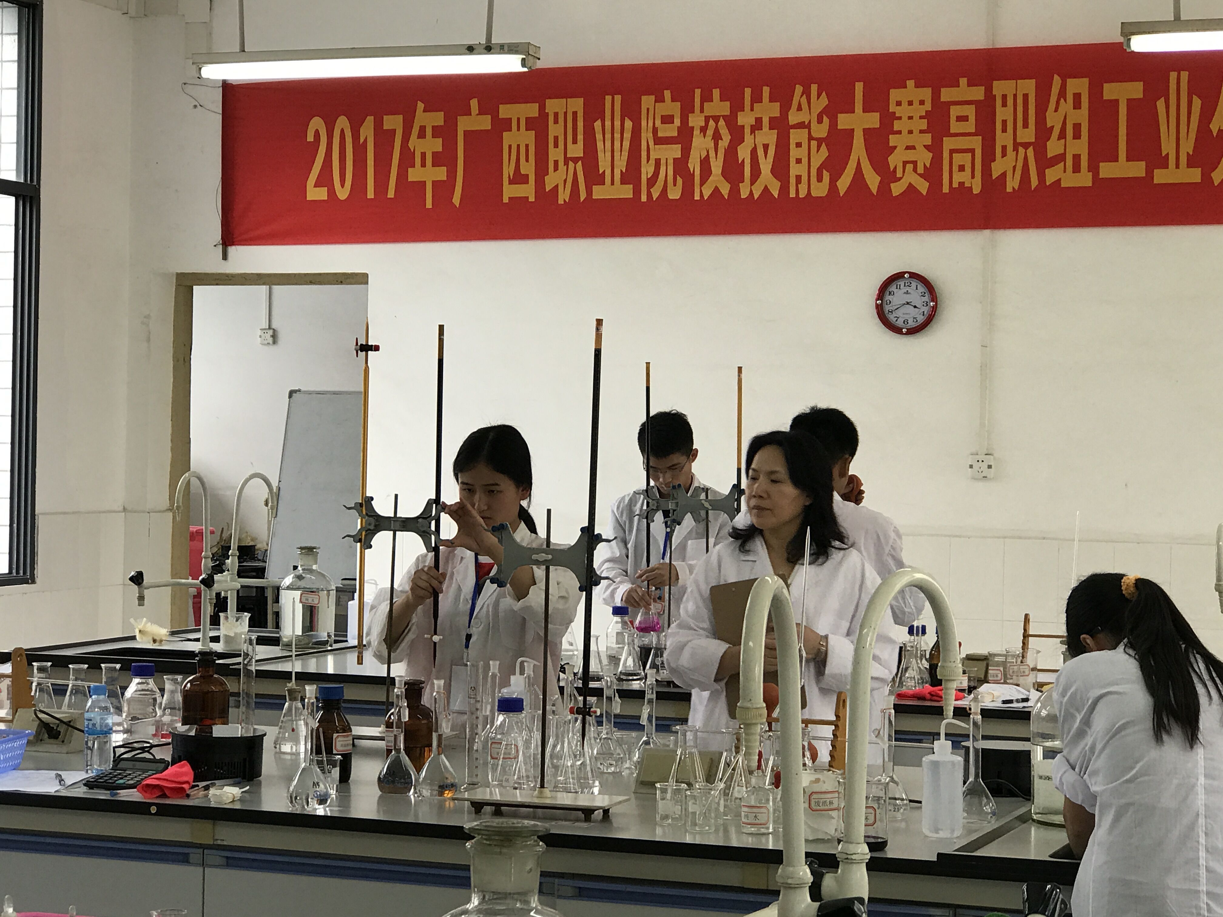 新闻网消息(文、图/环境与食品工程学院 韦文惠)2017年4月13日-14日,2017年全国职业院校技能大赛《工业分析检验》赛项广西选拔赛在广西工业职业技术学院举行。我校环境与食品工程学院派出以环境监测团队负责人林建国为领队,韦文惠、石少明老师为指导教师,环境监测与治理技术专业2014级学生张兰、2015级学生张媛圆为选手的参赛队伍。在比赛中过程中,该院选手凭着良好的心理素质和扎实娴熟的技能,获得该赛项广西选拔赛总分第二名的好成绩。
