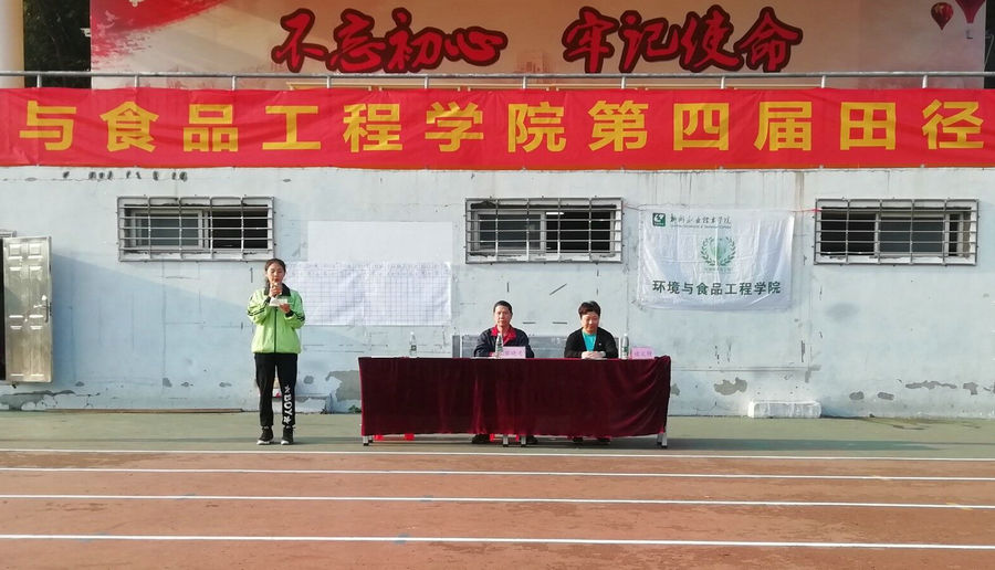 黎晓灵宣布环境与食品工程学院第四届田径运动会开幕,全体师生热血沸腾,运动会依次展开了各项目的比赛。