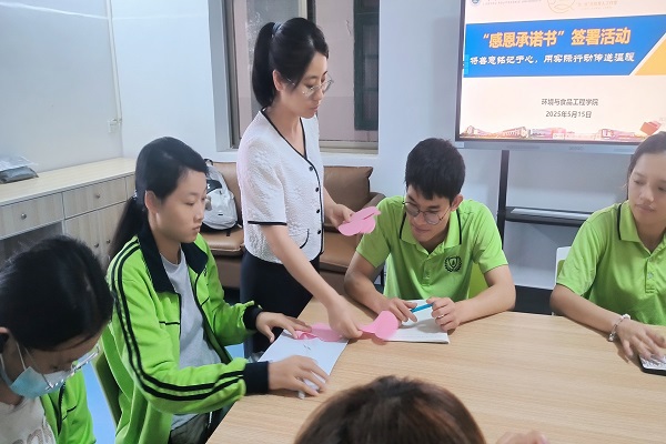 最后,诸葛六英在总结中强调,感恩不仅是情感上的表达,更要化为实际行动。希望同学们以受助为起点,在传递温暖的过程中实现自我价值,让感恩成为青春最动人的底色。今后,环境与食品工程学院将会继续探索多元育人路径,推动感恩教育走实走深,帮助受助学生完成从“受助”到“助人”的蜕变。
