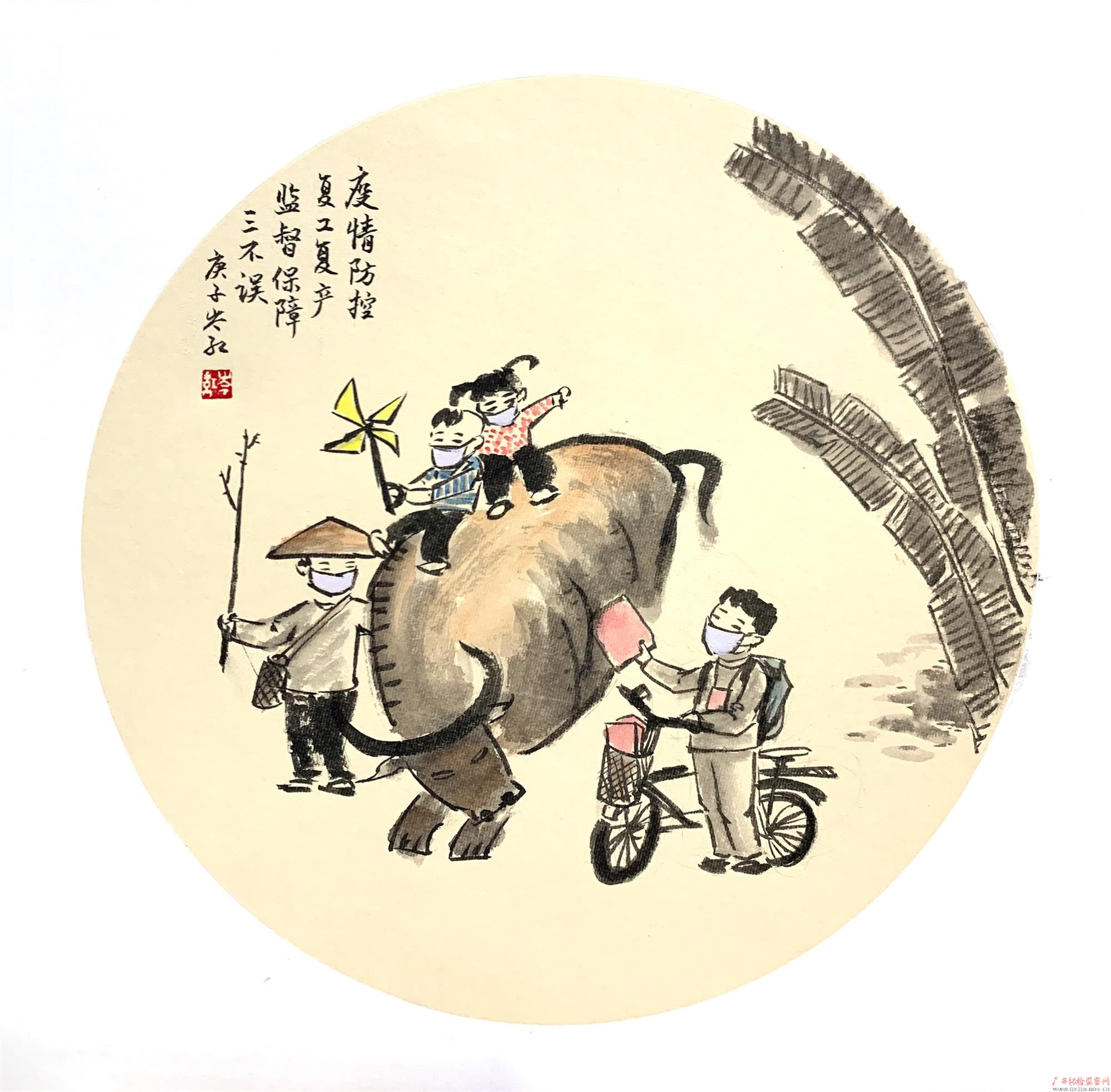 诗配画|疫情防控 复工复产 监督保障三不误 来源: 发布时间:2020-03-09 08:37:59 浏览次数: 次 【字体:小 大】 来源:广西纪检监察网惊蛰下田人半忧,春耕防疫记心头。闻雷但愿疫魔遁,不负青苗不负牛。(画:岑红 诗:叶扬) 终审:纪委监察室 分享到: 【打印正文】