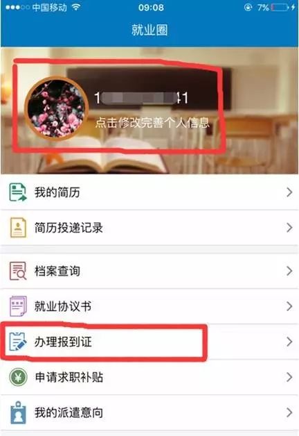 进入个人中心后在界面最上方“点击修改完善个人信息”,核对自己的个人信息。正确无误后。点击“办理报到证”。如图3.2,3.3。