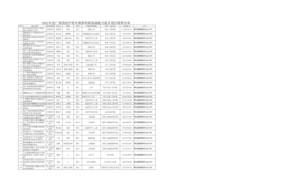 2022年广西高校中青年教师科研基础能力提升项目推荐名单