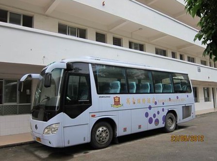实习酒店旅游车于5月22日停在贸易与旅游管理系楼下