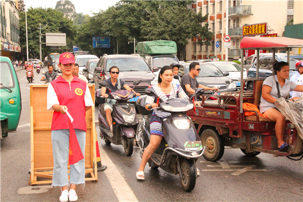 新闻网消息(文、图  贸易与旅游管理学院 /吴鹏 )为全力配合我市“文明创建·助力创城”工作深入开展, 进一步巩固文明交通成果,着力打造柳州有序、安全、文明的城市交通环境,提升我市文明形象,积极参与到柳州市争创第五届文明城市的活动中,践行文明,倡导文明交通。9月25日贸易与旅游管理学院志愿者赴柳州市西江路与屏山大道交界路口开展“文明创建·助力创城”文明交通劝导志愿服务活动。