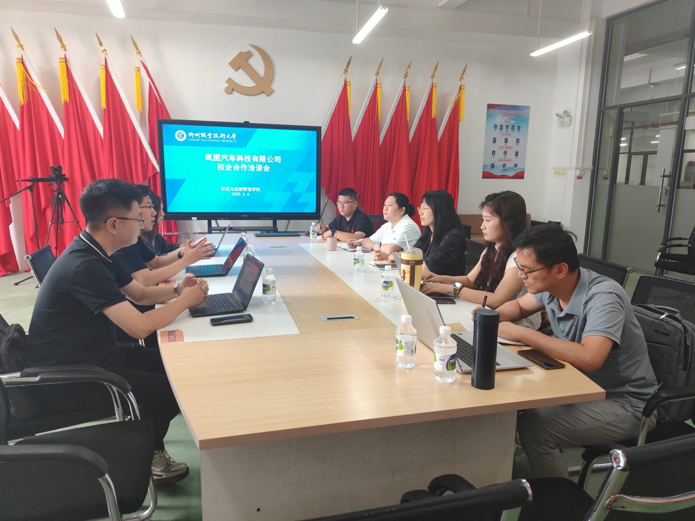新闻网消息(文/贸易与旅游管理学院 黄海林 图/贸易与旅游管理学院 路田)为深化产教融合、促进教育链与产业链精准对接,6月6日上午,岚图汽车科技有限公司到访我校贸易与旅游管理学院开展校企合作洽谈会。岚图汽车科技有限公司校企合作专家刘洋、营销领域招聘负责人李恢钱、新媒体区域业务负责人杨雪,贸易与旅游管理学院院长杨歌谣、学院实训实习负责人林翔君及相关专业教师代表参会,校企围绕订单班人才培养、实习实训、产学研合作等方面深入交流。