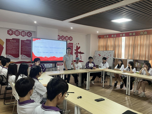 新闻网消息(文/ 汽车工程学院 覃小红 图/汽车工程学院 吴丽萍)随着汽车行业的快速发展,对于人才的专业能力和职业素养要求也越来越高。为了帮助学生更好地了解行业动态,明确职业方向,提升职业技能,2024年6月26日“匠心远航”生涯发展工作室携手驰美汽车协会在D4“一站式”学生社区举办主题为“我与优秀校友面对面”的职业能力提升工作坊。本次讲座邀请广西技术能手、技能状元、广西五一劳动奖章获得者房九林担任主讲,参与讲座的有“匠心远航”工作室负责人曾志、团委代理书记余姝源、社团指导老师吴丽萍、学生代表包括班级干部、入党积极分子、获得资助学生及各班学生代表,让学生有机会与行业内杰出的校友们进行深度交流,共同探讨职业发展的路径与策略。