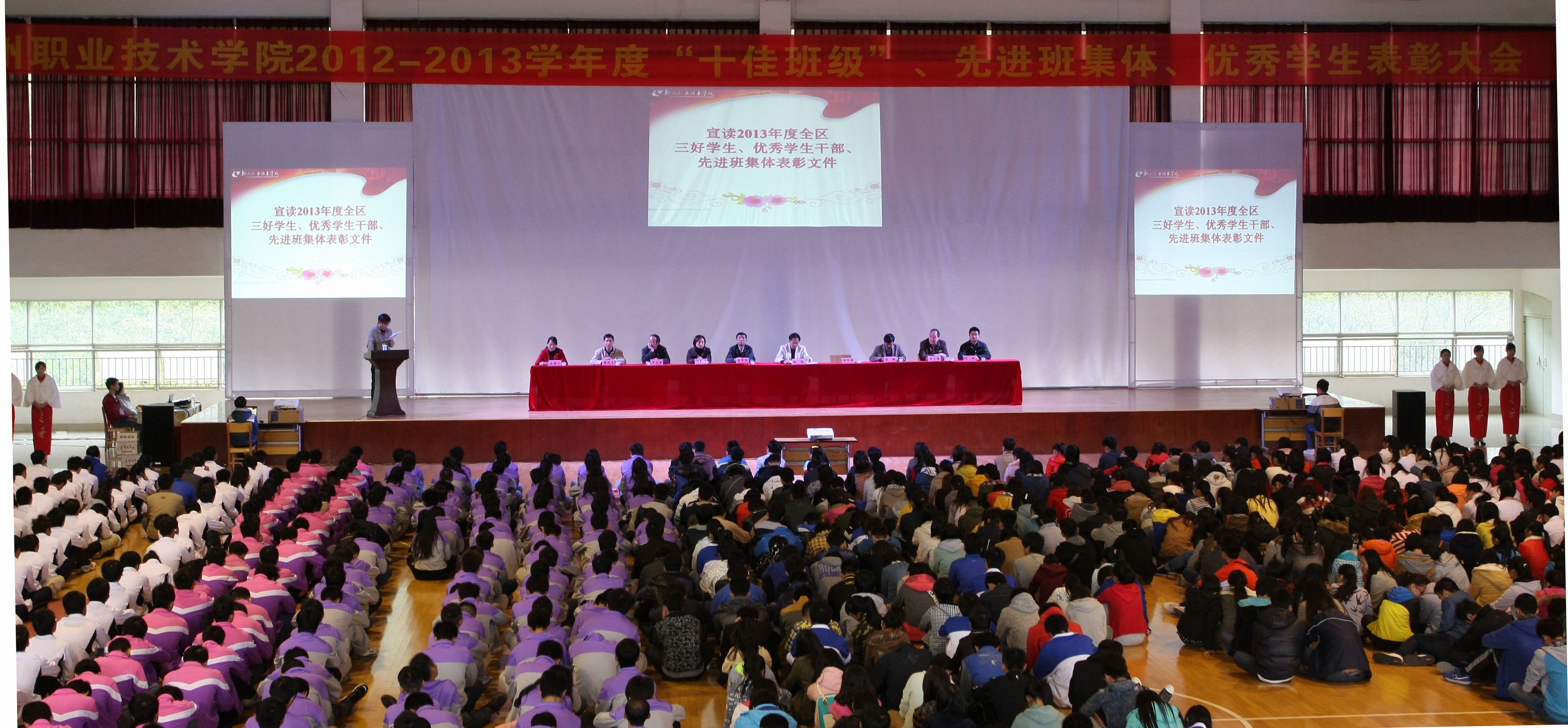 为在校园营造“学习先进、争创先进” 的良好氛围,激起同学们感恩学校、感恩社会之情,学院于2013年11月29日举行了2012-2013学年度“十佳班级”、先进班集体、优秀学生表彰大会。学院党委副书记阳旭、各系党总支书记以及1000余名学生参加了本次大会。