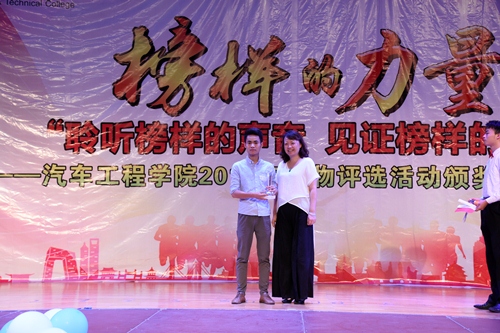 自今年5月份开始,汽车工程学院开展了2017年“榜样的力量”人物评选活动。本次活动共有72个集体或个人参加了评选,经过前期宣传、气氛营造、人物推选、学院初评、易班投票评选几个阶段,由学生教师共同评选,榜样类别分别是“和谐之家(班集体)”、“魅力之家(特色宿舍)”2个集体榜样,“党员模范”、“学习标兵”、“技能先锋”、“才艺达人”、“自强之星”5个人物榜样和“明星园丁”、“明星辅导员”、“明星干部”和“明星校友”4个明星榜样。这些榜样们在平凡的日常学习生活中用不平凡的事迹默默地影响着他人,引导着同学们往积极、健康的方向迈进。