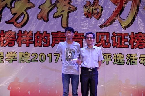 穿插在节目中的颁奖,把舞台的中央焦点放在了各个榜样的身上,到场的嘉宾为每一位“榜样”进行了隆重的颁奖仪式。为每一位“榜样”撰写的颁奖词是对他们榜样事迹的一个赞歌,为他们录制的视频,也是给予“榜样”们极大的肯定和荣耀,也以此来教育和引导好同学们,让大家向榜样学习。在晚会的最后,学院还颁发了在各级技能大赛中获得荣誉的参赛选手,也通过对参赛选手的肯定,激励同学们向每一个榜样看齐。