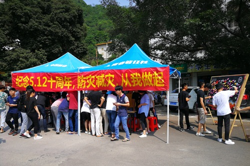 新闻网消息(文/汽车工程学院 伍帅 图/汽车工程学院 伍帅)今年是5.12地震十周年,也是全国第十个防震减灾日,为了缅怀5.12地震中逝去的同胞,同时进一步加深汽车工程学院学生的安全意识,提高防灾本领,汽车工程学院团委于5月12日中午14:00至17:00在社湾校区A区广场“举行纪念‘5.12’十周年,防灾减灾从我做起”倡议活动。