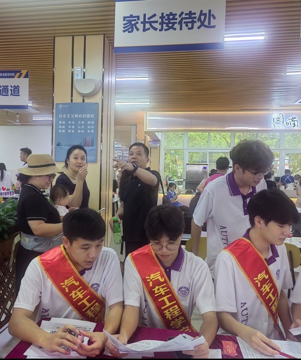 新闻网消息(文、图/汽车工程学院 韦夏利)在这个金秋送爽,硕果累累的季节里,汽车工程学院又迎来了一批怀揣梦想与希望的2024级新生。2024年9月8日早上,随着晨光初破黎明的寂静,校园内处处洋溢着喜庆与活力的氛围。早上七点半,学院领导、师生志愿者以及学生社团干部已经早早在学院迎新大本营守候,用温暖而热情的服务迎接每一位远道而来的新同学。新生们带着对大学学习生活的憧憬,手提行李,在志愿者的引导下有序完成注册、报到、缴费、入住宿舍等手续。