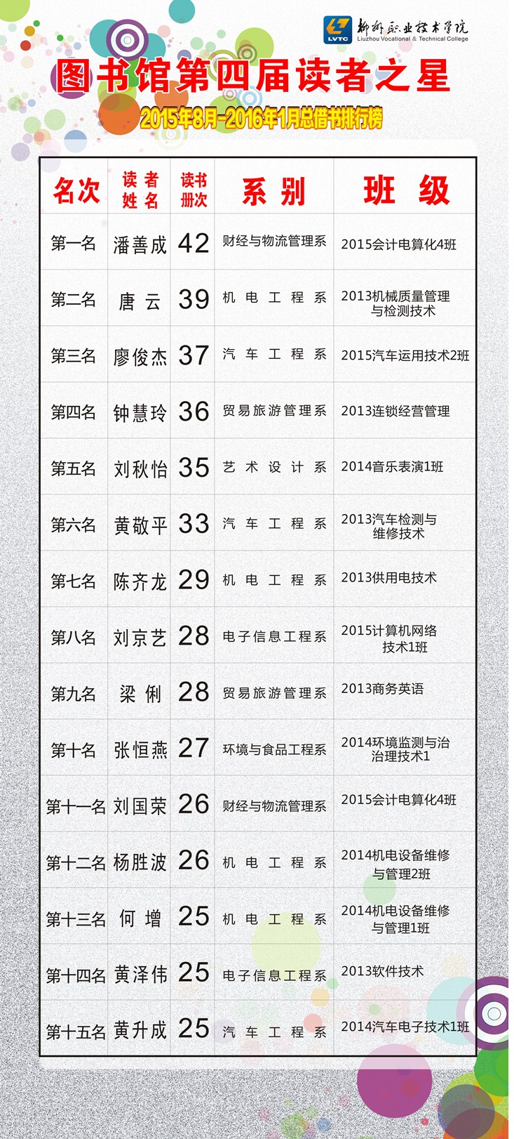 图书馆第四届“读者之星”