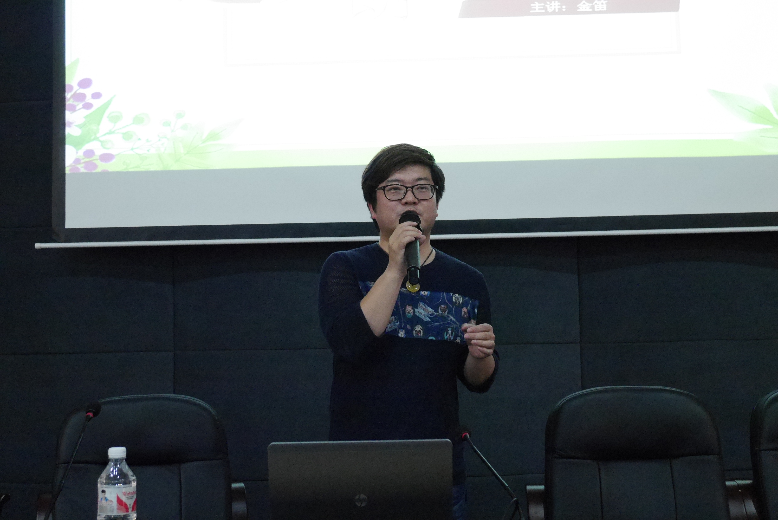 “同学们,大胆张开你的嘴巴,感受你的声音”。金老师以简单的预热互动开场,从朗诵的理论基础知识开始讲解,包括朗诵概念、朗诵活动的意义及朗诵的表演设计等内容,将朗诵的理论与生活中的应用相结合,使得朗诵更接地气、更加生活化,让同学们感受到朗诵就在大家的身边、在日常的生活中。讲座中,金老师还邀请两位朗诵爱好者现场朗诵了两首优美的现代诗歌。金老师也以身示范演示了朗诵的技巧,展示了朗诵中“声音的明亮”的魅力。