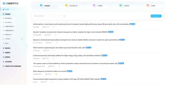 1.AI文献服务平台:属于读者用户的科研服务台,关注个性化学科资讯、技术概念关注,获得个性化的资讯推送,同时提供ai学术搜索、AI全文解析以及AI多篇文章综述服务,提供文献线上管理、阅读的智能工具,提高科研效率。