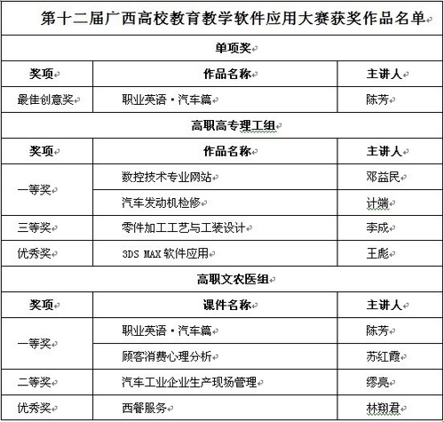 附:第十二届广西高校教育教学软件应用大赛获奖作品名单