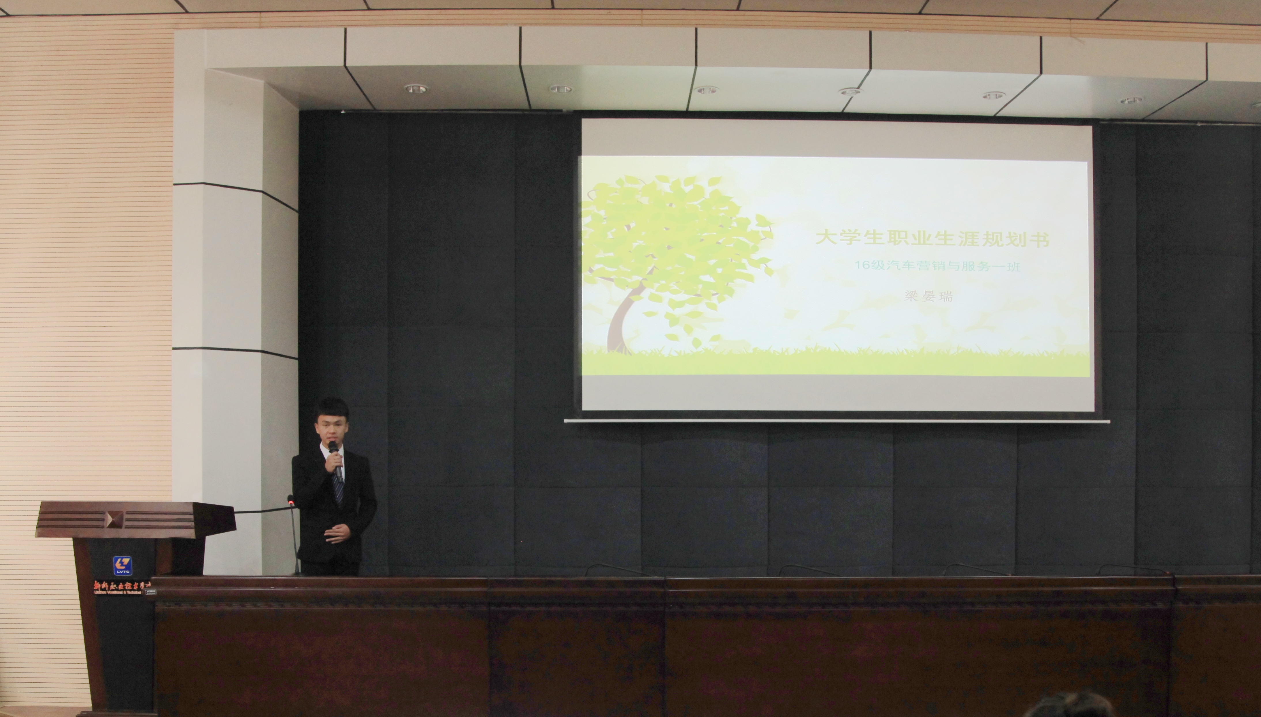 在演讲展示环节,参赛选手们激情飞扬,从自我认知、职业环境分析、职业决策、计划与实施、评估与调整等方面,全面展示了他们的职业生涯规划。选手们的作品设计结构完整、条理清楚、详略得当、重点突出,职业生涯目标制定得贴切合理,展现了一个个充满个人魅力的未来职业规划蓝图。在答辩环节,选手们利用掌握的职业规划知识沉着应答,充分展示自己的职业素养与能力,自信流畅的表达给现场观众留下深刻印象,赢得了阵阵掌声。