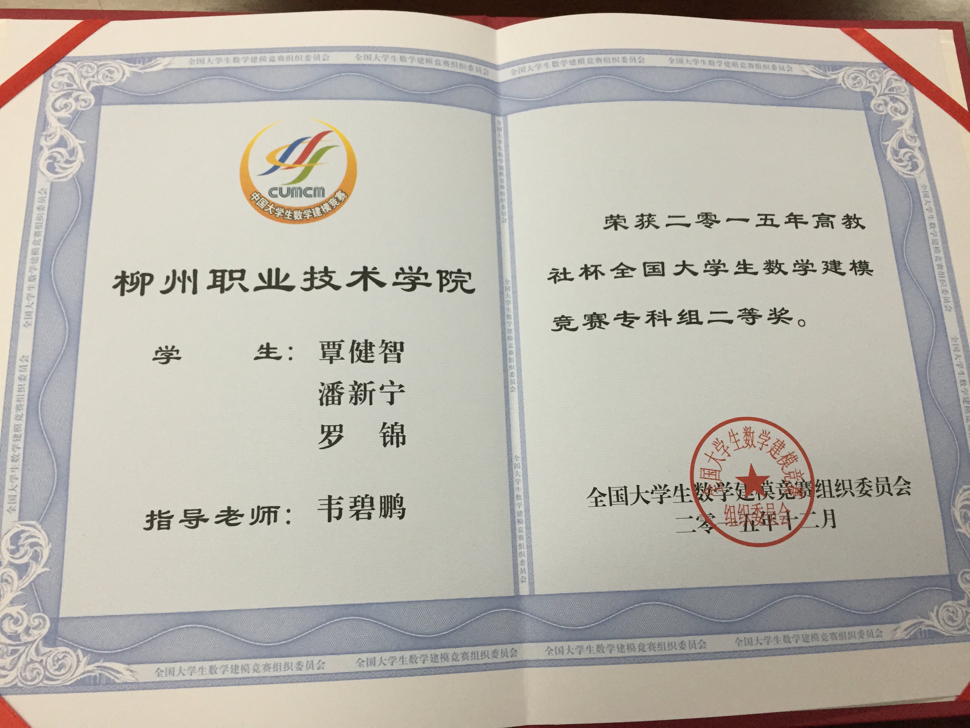 新闻网消息(通讯员/公共基础部 韦碧鹏)近日,从广西教育厅获悉,我院学子在2015年全国大学数学建模竞赛中荣获佳绩:五个参赛队中,一个队获国家二等奖兼广西赛区一等奖,两个队获广西赛区二等奖,余下两个队获成功参赛奖,我院国家奖答卷入选广西赛区优秀论文集。