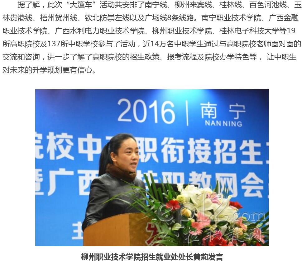 2016年1月4日,广西八桂职教网在职教新闻-院??煅独改恐?,刊发我校老师在2016年广西职业院校中高职衔接招生工作经验交流会上做典型发言的新闻。(截图:石玉丹)