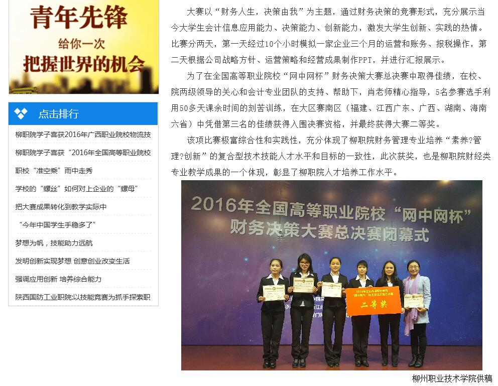 【中国高职高专网】柳职院学子喜获“2016年全国高等职业院?!型莆窬霾叽笕倍冉?