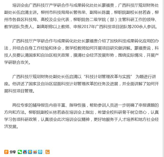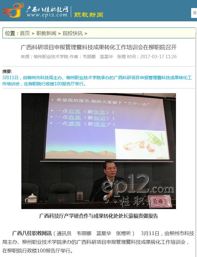 【广西八桂职教网】广西科研项目申报管理暨科技成果转化工作培训会在柳职院召开