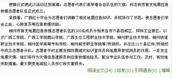 柳州教育网发布柳州市首支地震应急救援志愿者队成立仪式在我院举行的信息